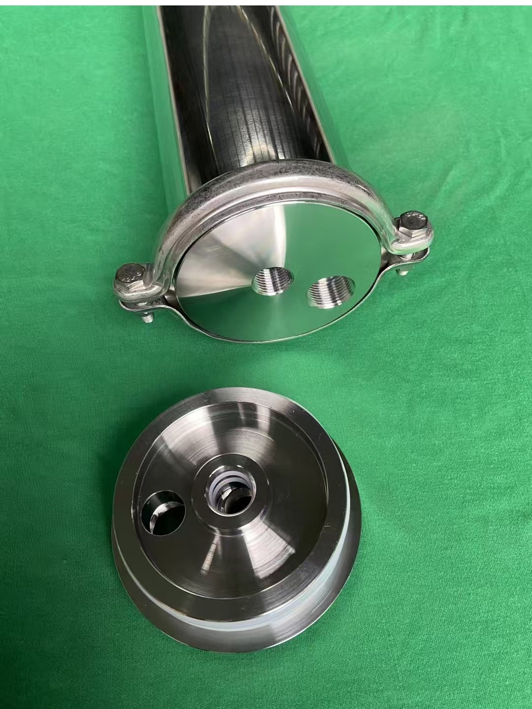 核心优势在这儿:‌ ‌强度与耐压性‌:不锈钢管壳本身强度高,配合密封结构,能承受更高压力,适合高压反渗透系统。 ‌耐用性与寿命‌:不锈钢耐腐蚀、抗老化,使用寿命远超塑料,不易因环境因素脆化。 ‌卫生与安全性‌:304不锈钢食品接触级安全,无析出物风险,密封性好保障水质。 ‌适用性‌:尤其适合4040/4080这类大尺寸、高产水量的膜元件,结构更稳定。 ‌和ABS塑料端盖比:‌ ABS塑料成本低、易加工,但耐压、耐温、寿命和安全性都不如不锈钢,多用于低压、小尺寸或低成本设备。不锈钢端盖在性能和寿命上优势明显,是更可靠的选择。